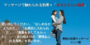 母性の出張マッサージ リンパ堂。40歳オーバーの熟練された技術と、その母性あふれるホスピタリティーで、貴方は子供の頃の記憶に浸るはず。母乳を飲まされ、座薬をさされ、おしめを変えられ、お風呂に入れてもらった・・・。幸福ホルモンがでまくり、触られることの効果に気づくはず。東京都心部の貴方の滞在先のホテル、ご自宅へ、深夜23時まで予約受付、出張します。